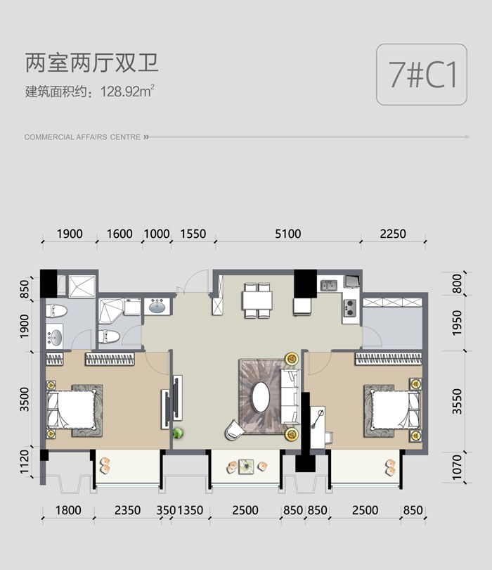 7号楼[两室两厅双卫128.92平米]